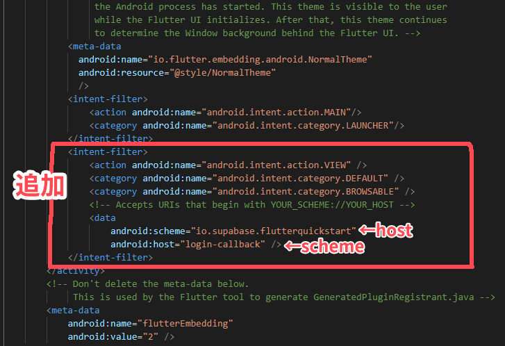android:scheme="io.supabase.flutterquickstart"