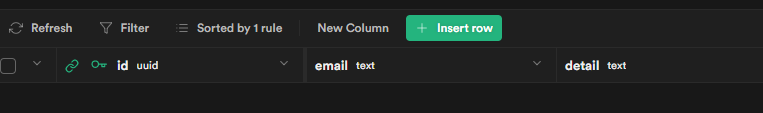 UUID・email・自由テキスト領域を持った新規テーブルをSQLエディターで下記のように作成します。